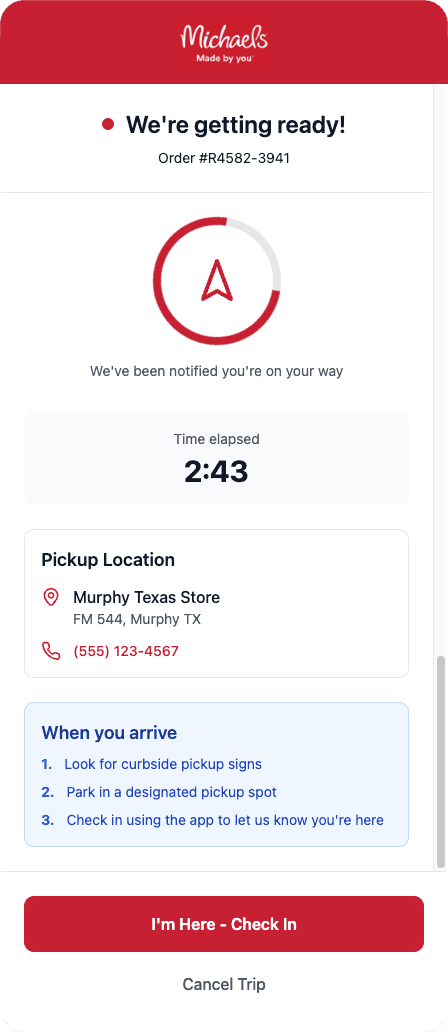 This work enabled Michaels to operate curbside pickup and BOPIS at scale during a period of extreme demand and operational uncertainty. Customers experienced clearer expectations and safer, more predictable pickups, while store teams benefited from improved coordination and reduced friction during fulfillment. The effort reinforced the importance of aligning digital intent with in-store reality—especially when systems are under pressure.