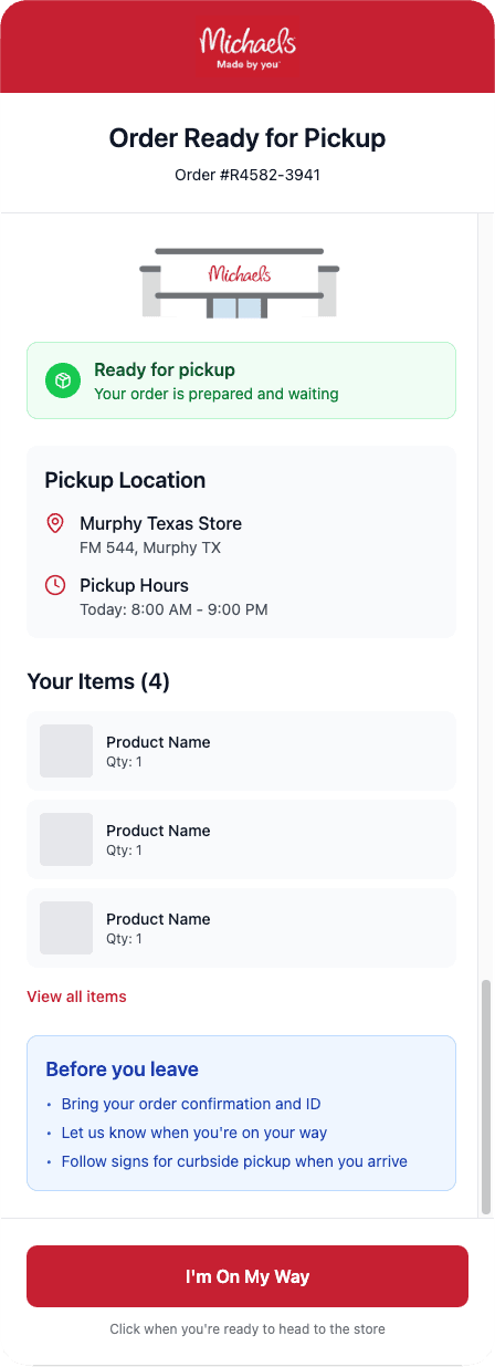 Customers often lacked clear confirmation of when orders were truly ready for pickup, increasing anxiety and unnecessary store interactions..